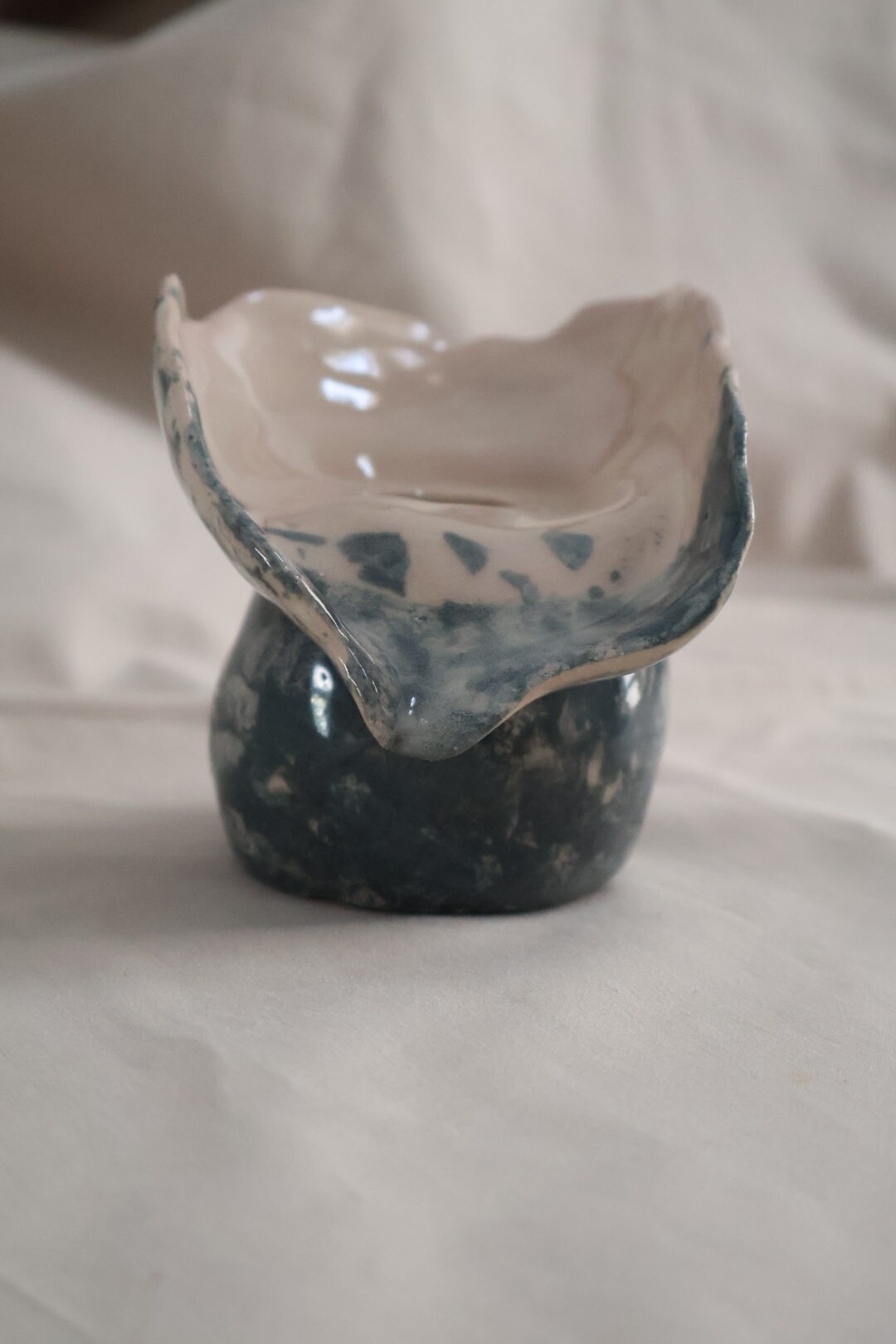 Αναδείξτε τον χώρο σας με αυτό το μοναδικό χειροποίητο κεραμικό βάζο, εμπνευσμένο από τις φυσικές φόρμες των λουλουδιών.