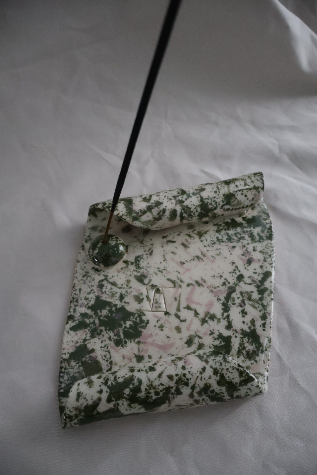 Κεραμική βάση για στικ αρωματοθεραπείας. Χειροποίητη κεραμική βάση με μοναδικό μαρμάρινο εφέ σε πράσινες και ροζ αποχρώσεις.