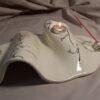 Με οργανικές καμπύλες που θυμίζουν τοπίο και κομψές, αφαιρετικές γραμμές ζωγραφισμένες στο χέρι, αυτό το κομμάτι λειτουργεί ταυτόχρονα ως βάση για ρεσώ και ως θυμιατοθήκη.